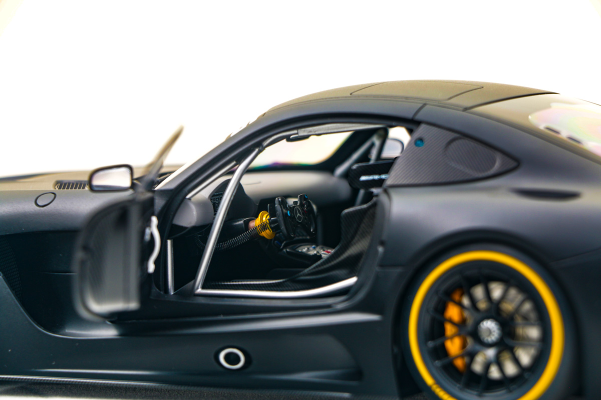 ماکت مرسدس بنز AMG GT3 اتوآرتطراحی رینگ و لاستیک ماکت مرسدس بنز AMG GT3 نیز کاملا واقع گرایانه صورت گرفته و میزان به دقت به کار رفته در ساخت این ماکت AutoArt جای تحسین دارد. فضای داخلی نیز با جزئیات کامل طراحی شده و قطعات فیبرکربنی با دقت تمام در این ماکت اتوآرت شبیهسازی شدهاند. حتی با باز کردن دربها و مشاهده علامت AMG به همراه خروجیهای اگزوز ممکن است از میزان رعایت جزئیات شگفت زده شوید. بسته بندی ماکت AutoArt نیز همانند همیشه عالی و دقیق صورت گرفته تا جایی که بسیاری از کلکسیونرها سعی میکنند این ماکت اتوآرت را از جعبه خارج نکنند.
