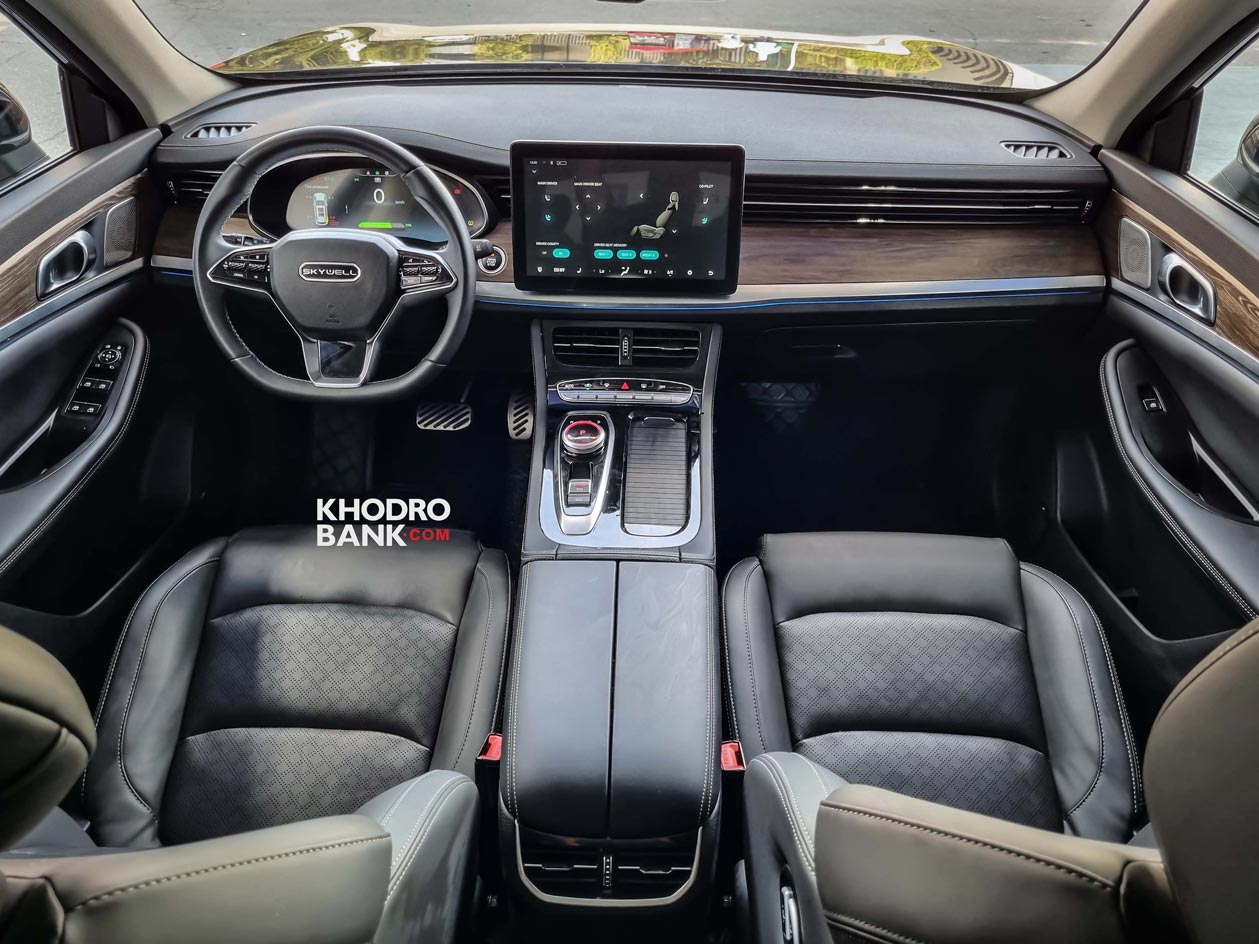 اسکای ول ET5 تریم داخلی کابین اسکای ول ET5 از رنگ مشکی تشکیل شده است اما برخی قطعات داشبورد و رودریها به رنگ قهوهای تیره هستند. فضاهای ذخیرهسازی متعددی نیز برای سرنشینان در نظر گرفته شده است. اسکای ول ET5 با دارا بودن فاصله بین محور 2.8 متر، یک خودرو جذاب برای سفرهای خانوادگی و همچنین تشریفات به حساب میآید. صندوق بار این خودرو نیز 467 لیتر فضا در اختیار کاربر قرار میدهد که در صورت تا کردن صندلیهای عقب، این حجم به 1141 لیتر افزایش خواهد یافت.