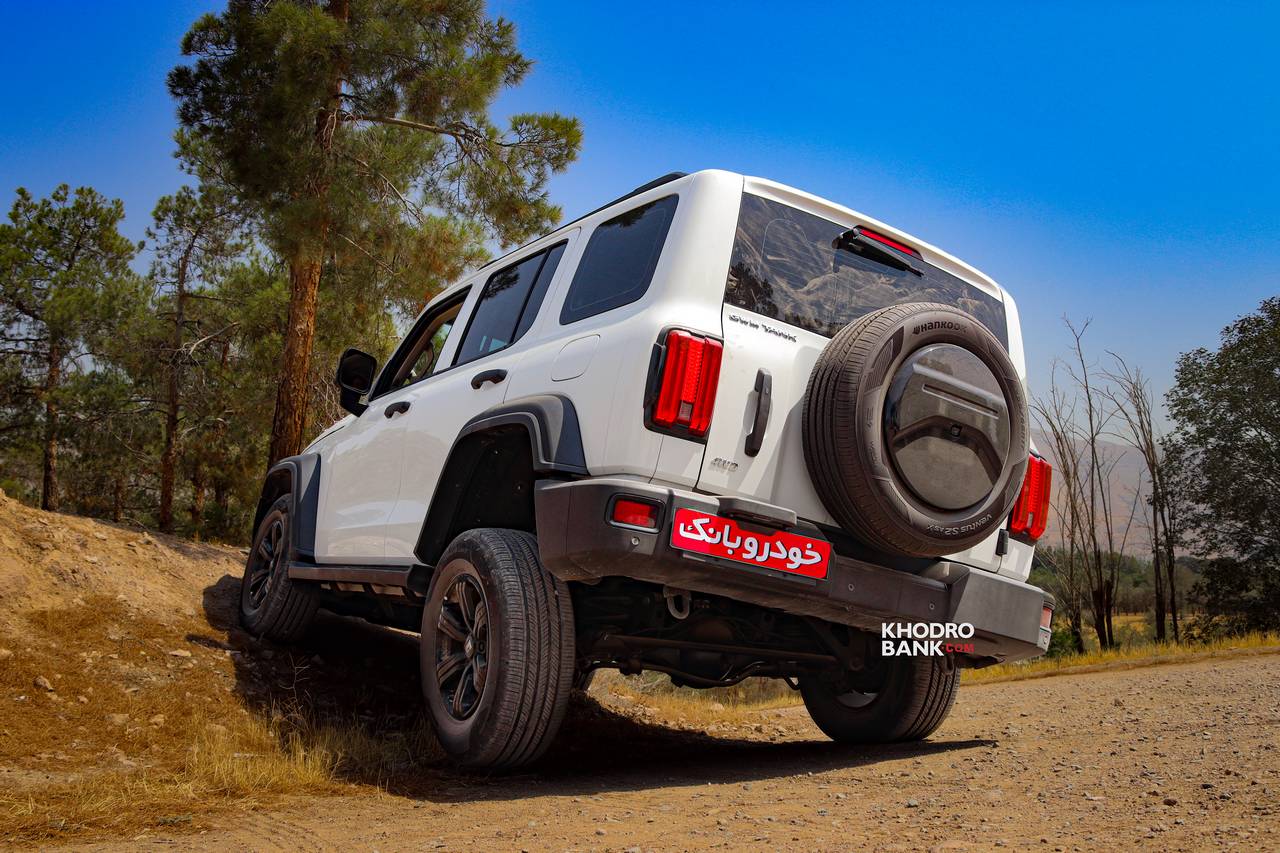 تانک 300 نمای عقب تانک 300 نیز از طرحی بسیار ساده بهره بردهد که به طور کلی بی شباهت با جیپ رانگلر نیست، اما طراحان گریت وال سعی داشتهاند با استفاده از چراغهای عمودی LED، ظاهری مدرن و به روز به این بخش بدهند. با این حال میتوان گفت که تنها بخش جذاب در نمای عقب، کاور مشکی پیانویی براق روی لاستیک زاپاس نصب شده روی در صندوق است که دوربین دنده عقب را در میان خود جای داده است. سپر عقب نیز مانند سپر جلو از ارتفاع کوتاهی برخوردار بوده که در مسیرهای حارج از جادهای میتواند بسیار کارآمد باشد.