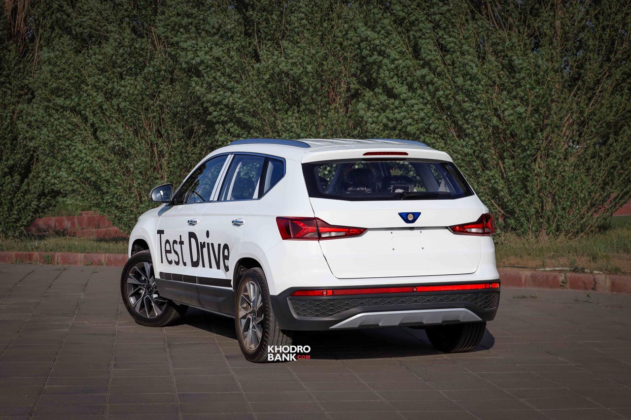 جتا VS5 نمای جانبی جتا VS5 بیننده را به یاد فولکس واگن تیگوان خواهد انداخت. البته این شباهت بیدلیل نیست، چرا که هر دو خودرو براساس یک پلتفرم توسعه یافتهاند. همانند تیگوان در قسمت پایین جتا VS5 نیز نوارهای پلاستیکی مشکی رنگ به کار رفته است تا ضربات وارده خسارت کمتری به قطعات بدنه وارد کنند. در نمای عقب جتا VS5، زبان طراحی کمی چینی شده است. چراغها از ترکیب خطوط تیز و منحنی تشکیل شدهاند و به محصولات دیگر فاو شبیه هستند. برای مثال اگر هایما S5 را کنار جتا VS5 بگذارید، متوجه شباهت بین این خودروها در بخش نمای عقب خواهید شد. خوشخبتانه از خروجیهای اگزوز تقلبی در این خودرو خبری نیست و سپر به شکل کاملا ساده طراحی شده است.