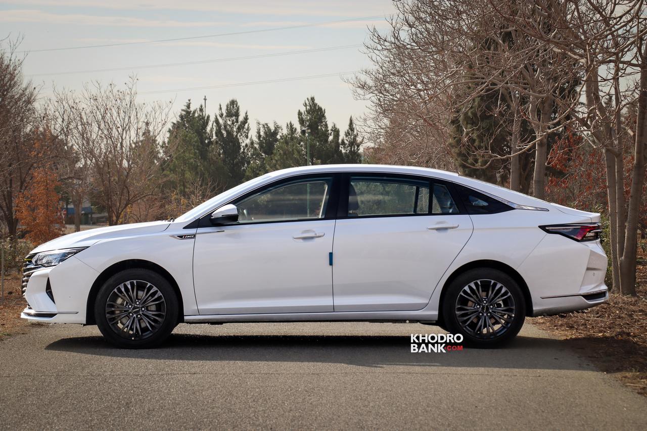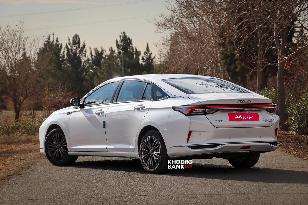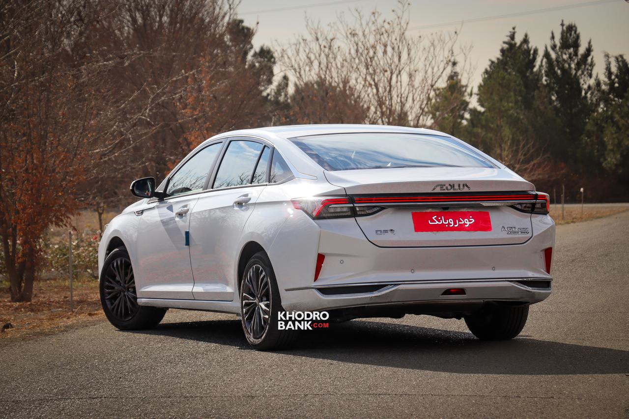 دانگ فنگ شاین مکس هیبرید در نمای جانبی همانطور که گفته شد مهمترین المان طراحی فستبک و سقف شیبدار است که نمایی خاص و متفاوت به شاین مکس هیبریدی داده است. تریم کرومی دور شیشههای جانبی که تا ستون C امتداد یافتهاند نیز سعی بر لوکستر نشان دادن این محصول دارند. همچنین رینگهای اسپرت دودی رنگ نیز در این بخش توجه را به خود جلب میکنند. اما مهمترین نکته در نمای عقب این خودرو چراغهای یکپارچهای است که این روزها به موضوع ترند طراحی خودروسازان چینی تبدیل شده اسن. همچنین شبرنگهای عمودی در طرفین سپر و طرخ دیفیوزر مانند در قسمت زیرین سپر از دیگر المانهای برجسته این بخش به شمار میروند.