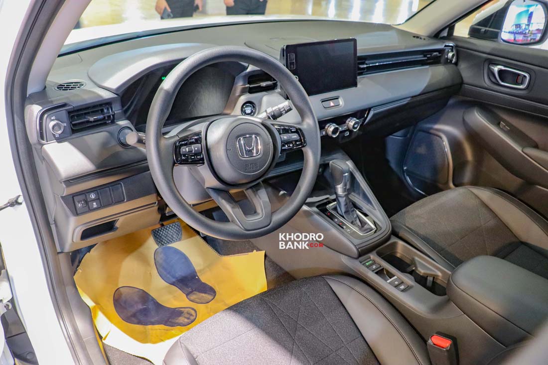 نمای داخلی هوندا وزل طراحی سادهتری نسبت به نمای خارجی آن دارد. از آنجایی که با یک خودرو اقتصادی روبرو هستیم، تمرکز طراحان در خلق کابین وزل بر کارایی و دسترسی راحت به ادوات و ابزارها بوده است. خوشبختانه مواد استفاده شده در ساخت کابین وزل شامل پلاستیک نرم و چرم مصنوعی نیز میشوند، از این رو لمس ادوات کابین حس خوبی را به شما منتقل خواهد کرد. نمایشگر سیستم چندرسانهای به صورت جداگانه در قسمت بالایی داشبورد نصب شده است. این نمایشگر کیفیت مناسبی دارد و در قسمت زیرین آن، کنترلرهای سیستم تهویه قرار گرفتهاند. تریم داخلی هوندا وزل از رنگهای متضاد مشکی و سفید تشکیل شده است که ترکیب مناسبی را برای یک خودرو اقتصادی شکل دادهاند. در واقع اکثر خودروهای اقتصادی از کابین تکرنگ مشکی رنگ بهره میبرند و استفاده از دو رنگ در ساخت قطعات کابین هوندا وزل، اقدامی مثبت محسوب میشود. دریچههای تهویه این خودرو نیز طرحی متمایز دارند که مشابه آن را در کمتر خودرویی دیدهایم.