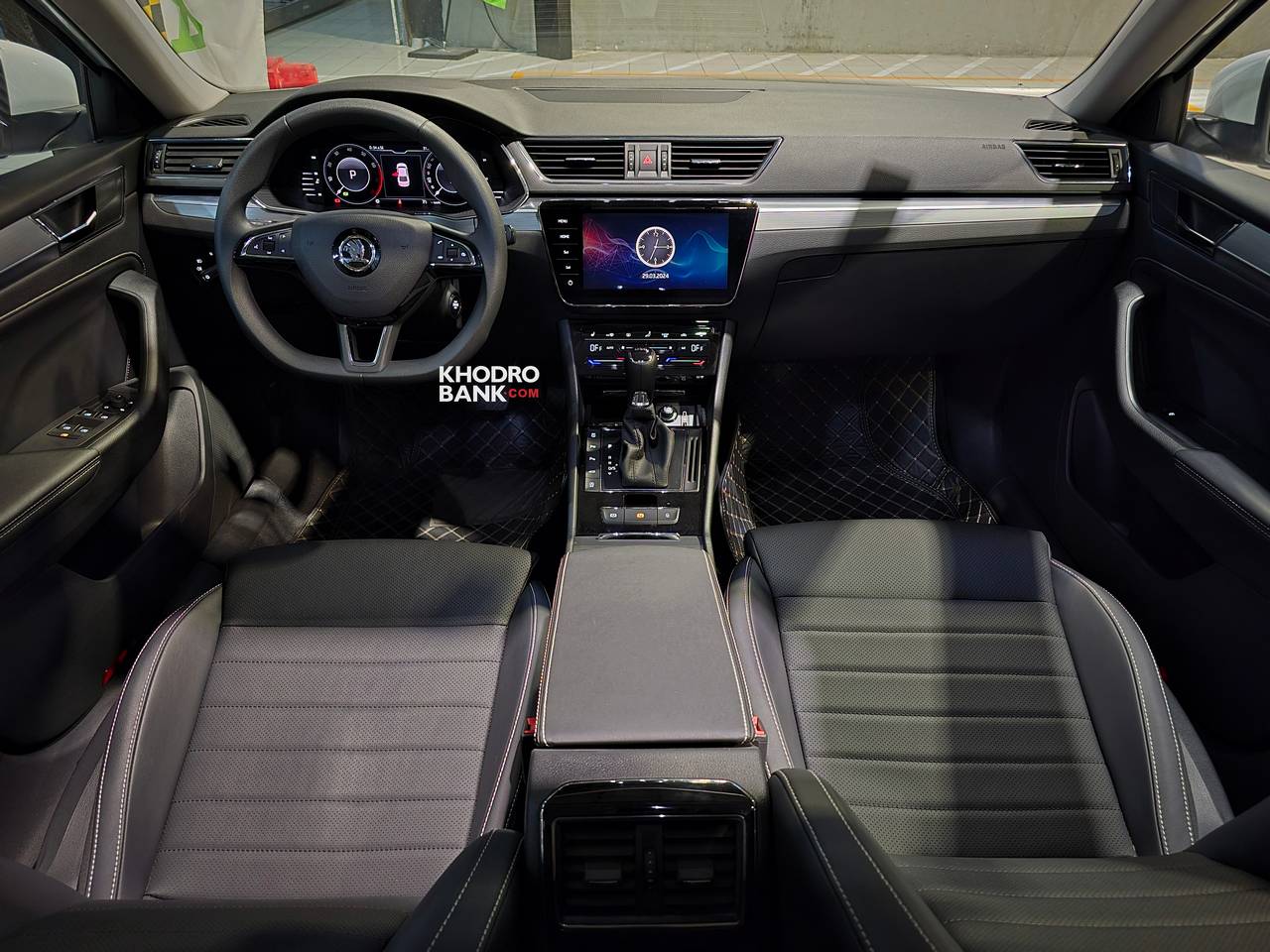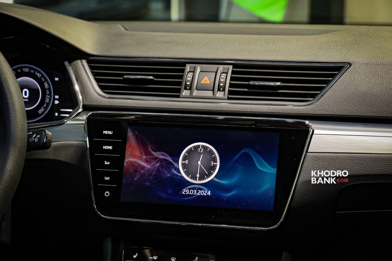 با نگاهی به فضای داخل کابین اشکودا سوپرب می توان به خوبی متوجه شد که با خودروی با اصالت اروپایی مواجه هستیم. چرا که علاوه بر کیفیت قابل توجه متریال مصرفی، شاهد حجم زیادی از دکمه های فیزیکی روی پنل مرکزی داشبورد هستیم که برخلاف خودروهای امروزی، خصوصا برندهای چینی، کمتر دستخوش دیجیتالی سازی شده است. با این حال در مرکز داشبورد یک صفحه نمایشگر 9.2 اینچی لمسی و یک صفحه نمایش 10.25 اینچی کلاسترف فضای کابین را به خوبی مدرن نشان داده و به جذابیت آن افزودهاند. همانطور که از باطن اقتصادی، ساده و میانهرو یک محصول از زیرمجموعه فولکس واگن انتظار میرود، نمای داخلی اشکودا سوپرب بسیار معاصر، ساده اما بسیار کاربردی و باکیفیت است. بخش هایی از داشبورد و رودری ها از جنس پلاستیک سخت بوده و نوار میانی آن از جنس چرم درنظر گرفته شده که به خوبی حس یک سدان لوکس میان رده را به سرنشینان القا می کند.