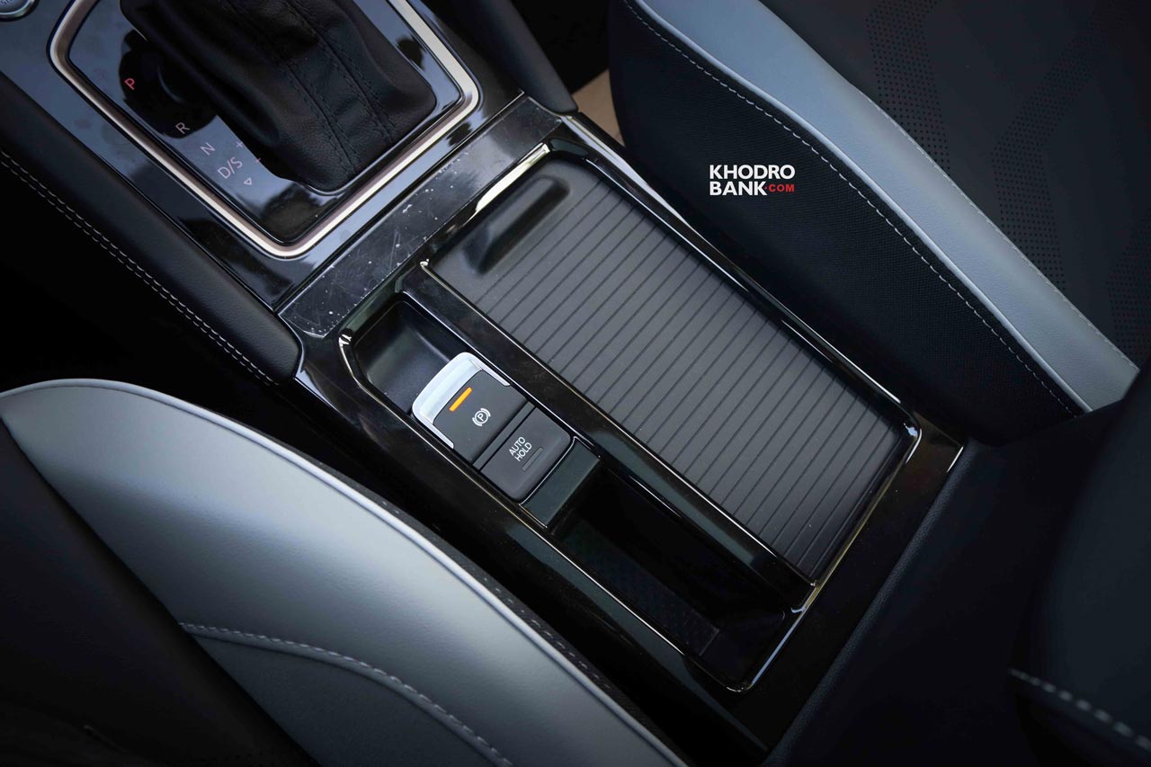 جتا VS7 داشبورد جتا VS7 از قسمت میانی به سمت راننده متمایل شده است تا او کنترل بیشتری بر ابزارهای رفاهی خودرو داشته باشد. پنل سیستم تهویه جتا VS7 نیز به صورت اتوماتیک است که دکمههای لمسی دارد. در قسمت زیرین آن نیز درگاه USB به همراه شارژر بیسیم تلفن همراه قرار گرفتهاند. کابین جتا VS7 از تریم دو رنگ مشکی – نقرهای بهره میبرد که این تریم به طور همزمان در داشبورد و همچنین روکش صندلیها رعایت شده است. روکش فرمان خودرو و روکش صندلیها از جنس چرم مصنوعی هستند و قسمت میانی داشبورد نیز از پلاستیک نرم تشکیل شده است. با این حال قسمت بالایی داشبورد از پلاستیک خشک ساخته شده است تا مشتریان فراموش نکنند که با نسخه اقتصادی محصول فولکس واگن روبرو هستند! فاصله بین دو محور جتا VS7 معادل 2730 میلیمتر است. این خودرو از آرایش پنج صندلی بهره میبرد و بنابراین سرنشینان فضای کافی برای سر و پای خود را در اختیار خواهند داشت. حجم فضای بار این خودرو نیز برای سفرهای میان مدت خانوادگی کافی به نظر میرسد.