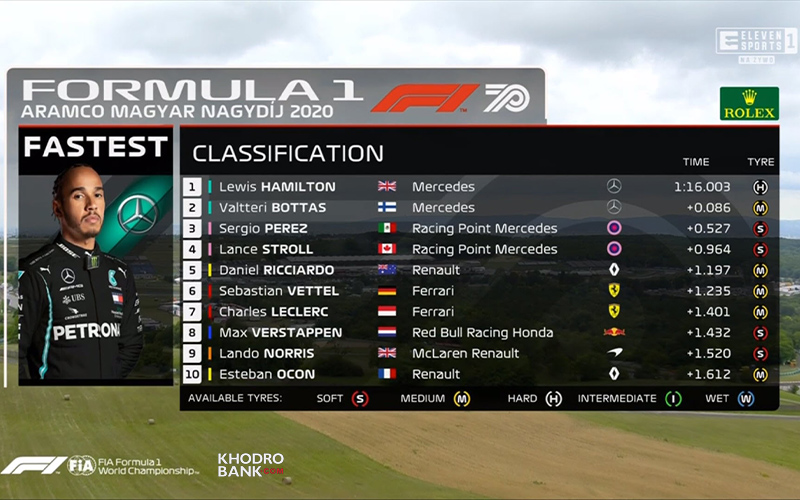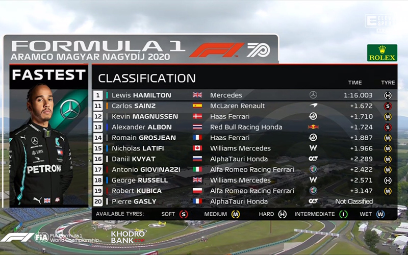 نتایج کلی تمرین اول گرندپری فرمول یک مجارستان 2020