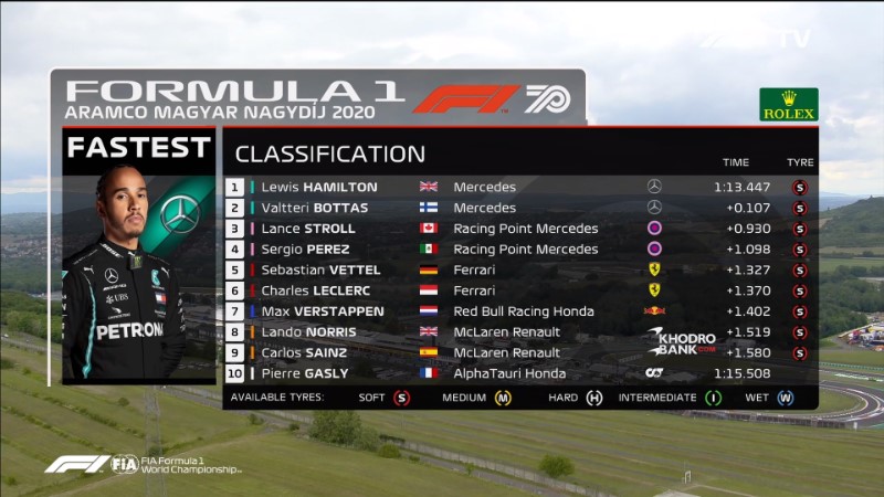 ده نفر برتر تعیین خط فرمول یک مجارستان ۲۰۲۰به این ترتیب سه خط اول استارت بین تیم های مرسدس، ریسینگ پوینت و فراری تقسیم میشه و ردبول تنها به یک رده ۷ام بسنده میکند.