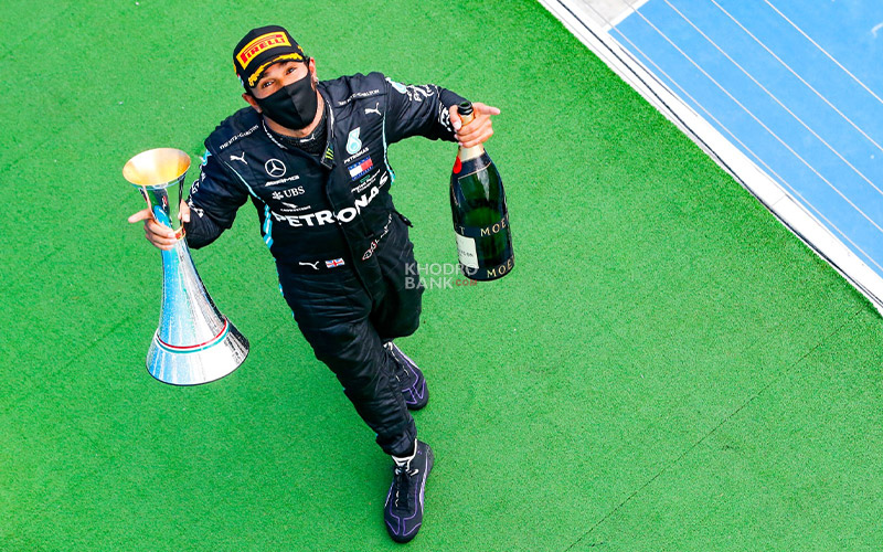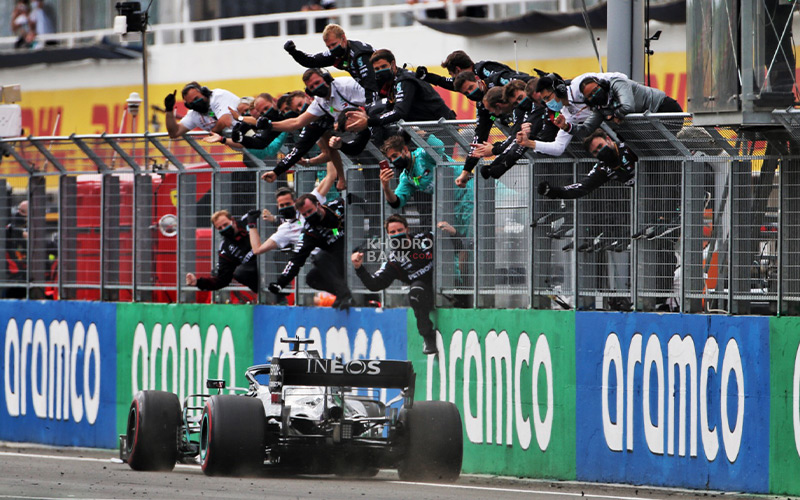 لحظه عبور لوئیس همیلتون از خط پایان مسابقه مجارستان 2020