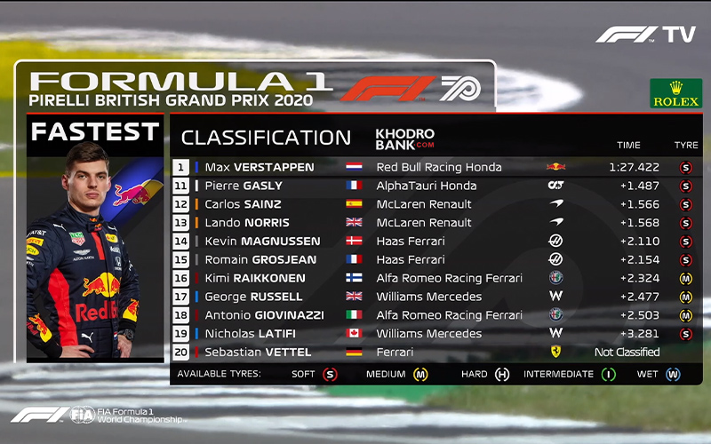 نتایج کلی تمرین اول گرندپری فرمول یک بریتانیا 2020