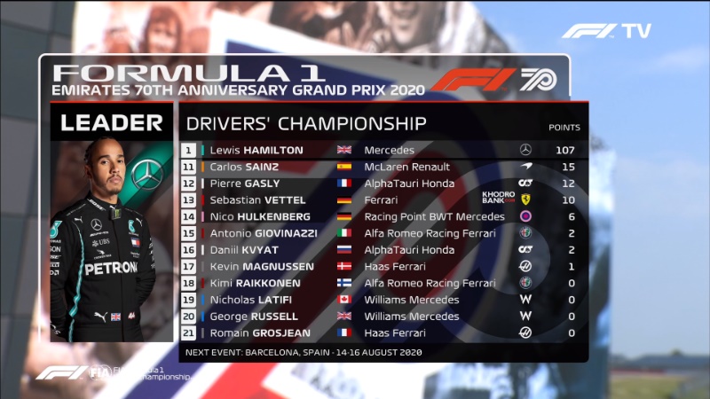 به زودی با اخبار مسابقه سیلورستون در خدمت شما عزیزان خواهیم بود. در پایان توجه شما را به جدول امتیازات مسابقه جلب میکنیم.