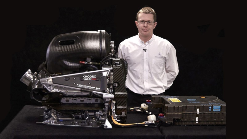 اندی کاول و موتور فرمول یک مرسدسکاول در سال ۲۰۰۴ به تیم مرسدس پیوست و در توسعه موتورهای ۶سیلندر وی شکل هیبرید کنونی که از سال ۲۰۱۴ معرفی شدهاند نقش اساسی داشته است.