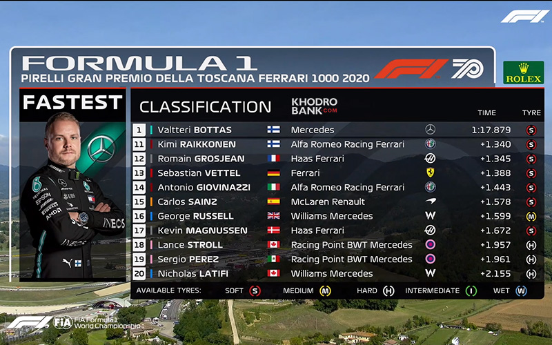 نتایج کامل تمرین اول گرندپری فرمول یک توسکانا 2020