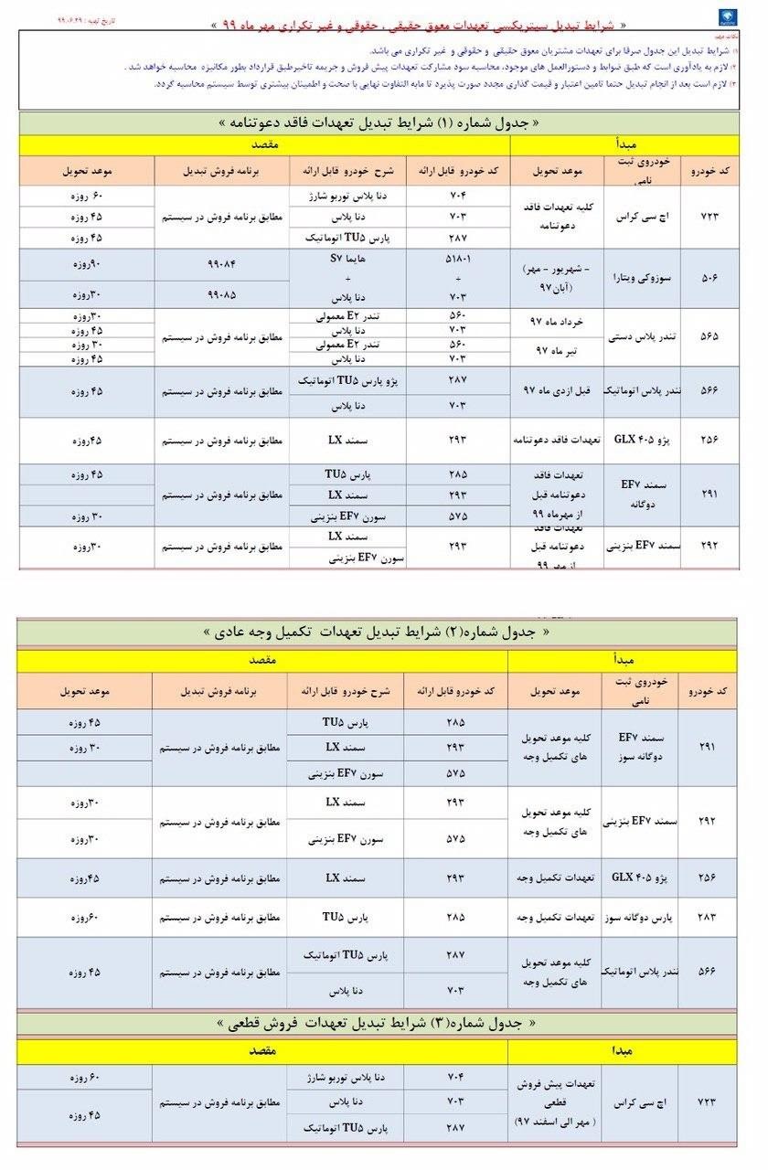 گروه صنعتی ایران خودرو با توجه به تاخیر طولانی مدت تحویل و عدم تولید برخی از خودروهای ثبت نامی مشتریان، طرح تبدیل برخی از محصولات غیرقابل عرضه خود را ویژه مهرماه 99 اعلام کرد.