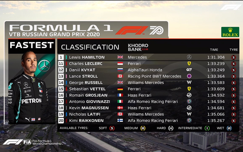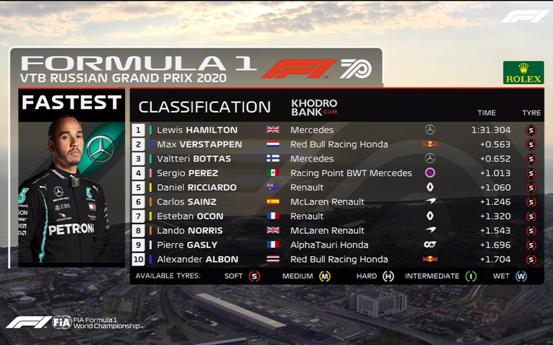 نتایج کامل تعیین خط گرندپری فرمول یک روسیه 2020