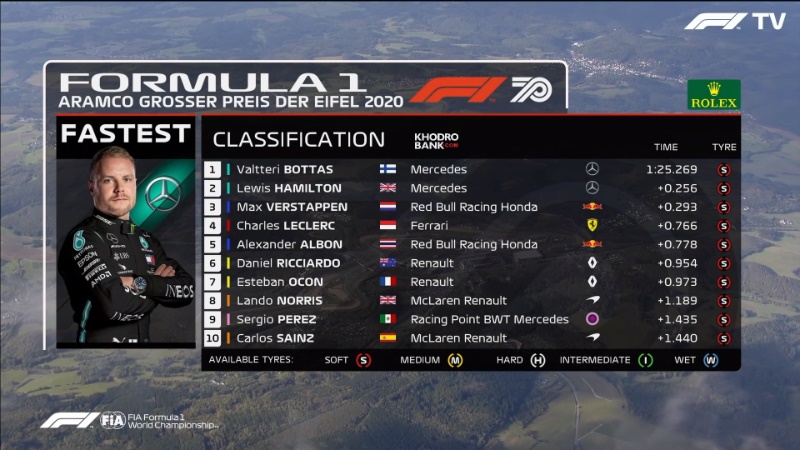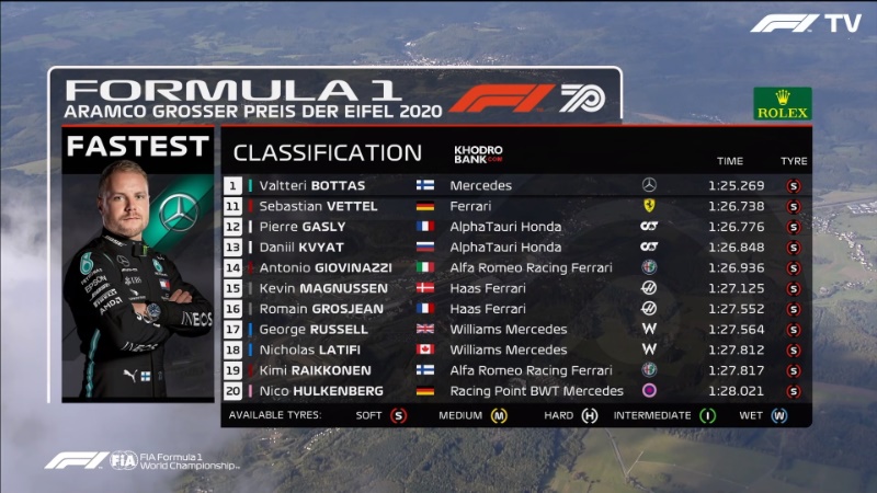 در پایان توجه شما را به جدول رده بندی تعیین خط مسابقه فرمول یک آلمان، گرندپری ایفل جلب میکنم.