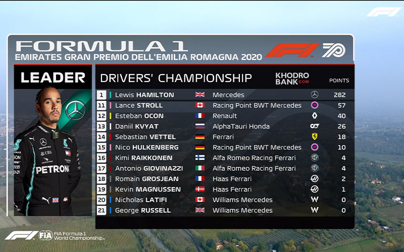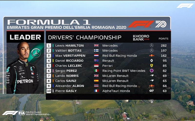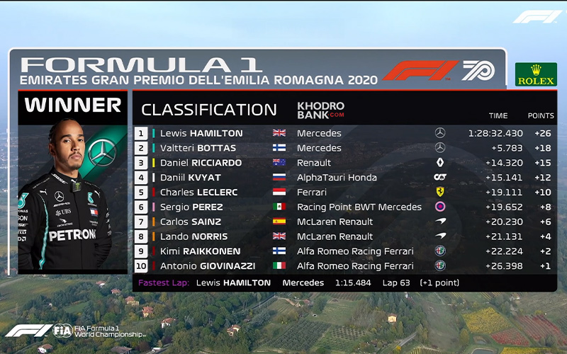 این تصمیم همیلتون باعث شد تا در زمان حضور خودروی ایمنی مجازی پیت استاپی ارزان اشته باشد و زمان کمتری نسبت به حالت عادی از دست بدهد. بدین ترتیب بعد از انجام پیت استاپ در جلود والتری بوتاس و مکس ورشتپن در رده نخست خارج شد.