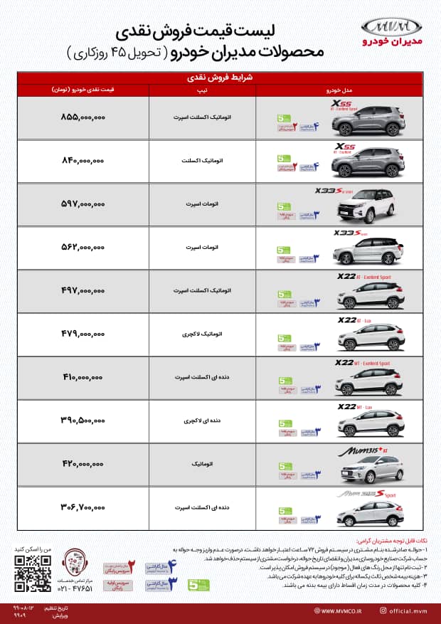قیمت محصولات ام وی ام
