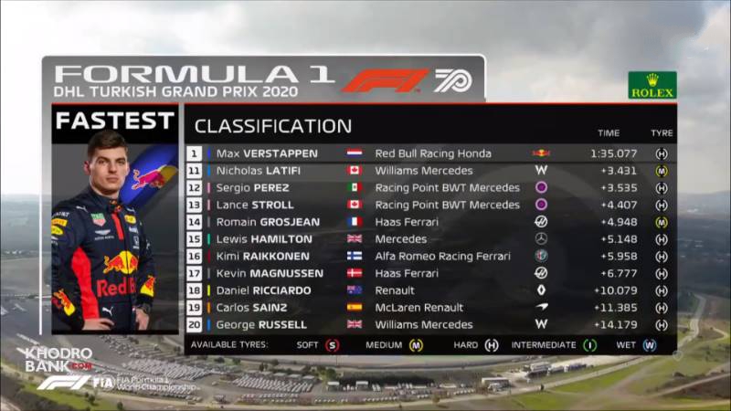 گرندپری استانبول در تمرین اول برای مرسدسها غیر منتظره آغاز شد. خودروی همیلتون که از ابتدا دچار مشکل بود و خیلی دیر جلسه تمرینی را آغاز کرد و در نهایت با 5.148 ثانیه اختلاف نسبت به مکس ورشتپن در صدر جدول تمرین امروز، در رده پانزدهم این جلسه را به پایان برد. همیلتون رمانی در حدود 1 ساعت از این جلسه را از دست داد.