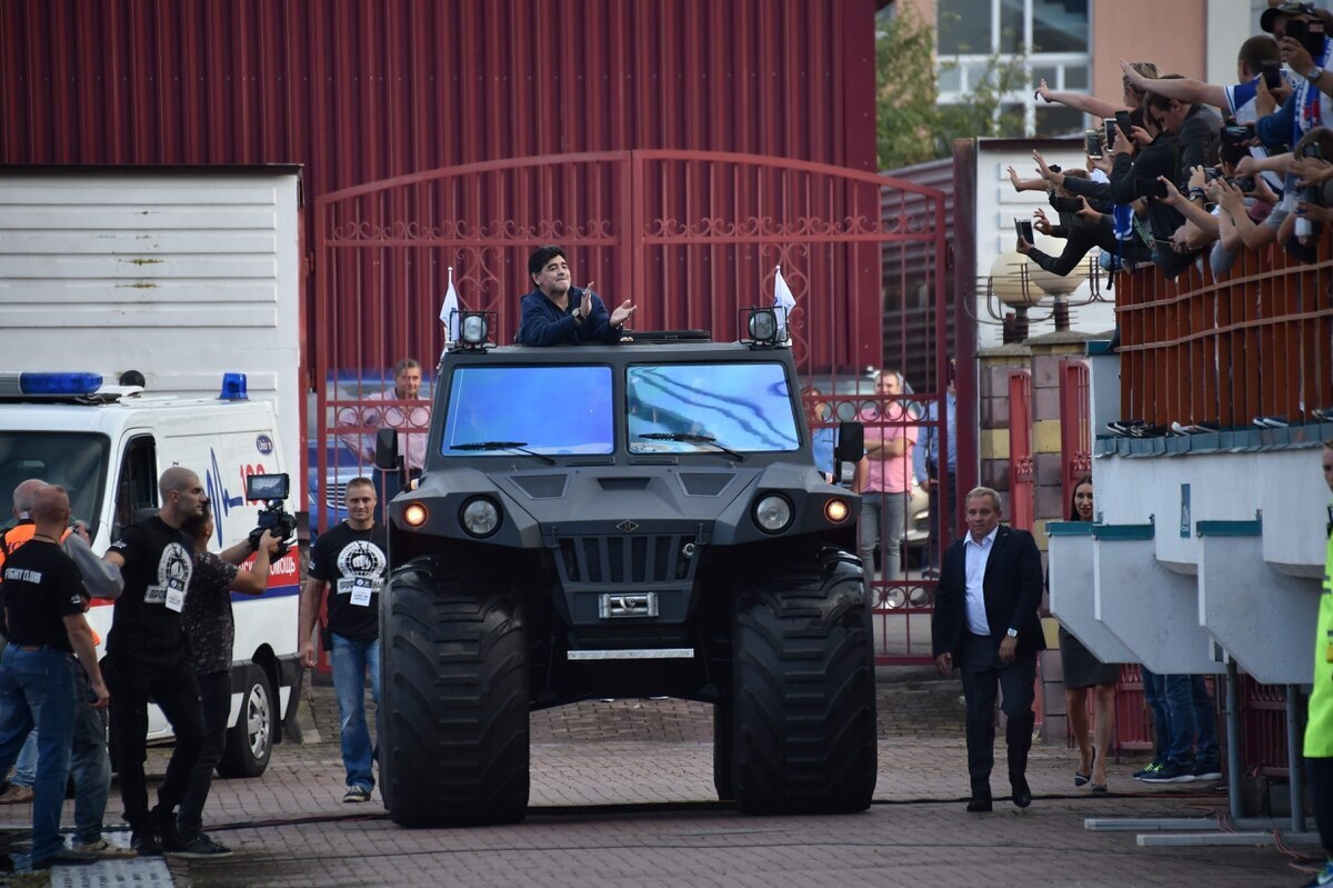 مارادونا در چند سال پایانی، یک خودروی عجیب به نام Overcomer Hunta را خریداری کرد. یک چهارچرخ بسیار بزرگ که می تواند در مسیرهای بسیار سخت آفرودی به راحتی حرکت کند. البته برخلاف جثه بسیار بزرگ این خودرو، یک موتور 2 لیتری توربودیزل روی آن نصب شده که تنها می تواند 120 اسب بخار و 291 نیوتن متر گشتاور را تولید کند و حداکثر سرعت آن تنها 70 کیلومتر در ساعت است.