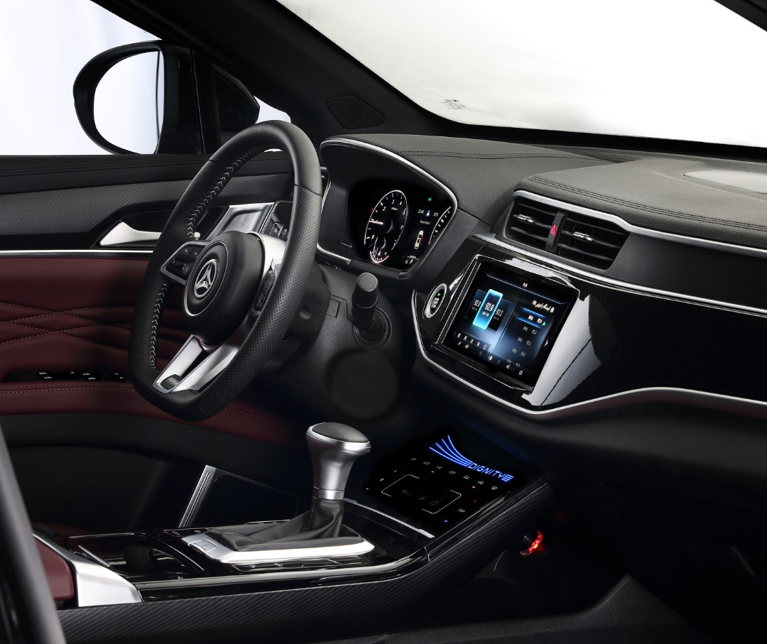 همچون ظاهر بیرونی، در داخل کابین هم به هر دو مولفه طراحی اسپرت و لوکس توجه شده و در قسمت های مختلف شاهد بکارگیری آنان هستیم. در مقابل راننده یک فرمان اسپرت D کات دیده می شود و در پشت آن هم صفحه کیلومتری تمام دیجیتالی وجود دارد که همانند خودروهای اسپرت در مرکز آن شمارنده دور موتور قرار گرفته و میزان سرعت اتومبیل هم در مرکز همین دورشمار نمایش داده می شود.