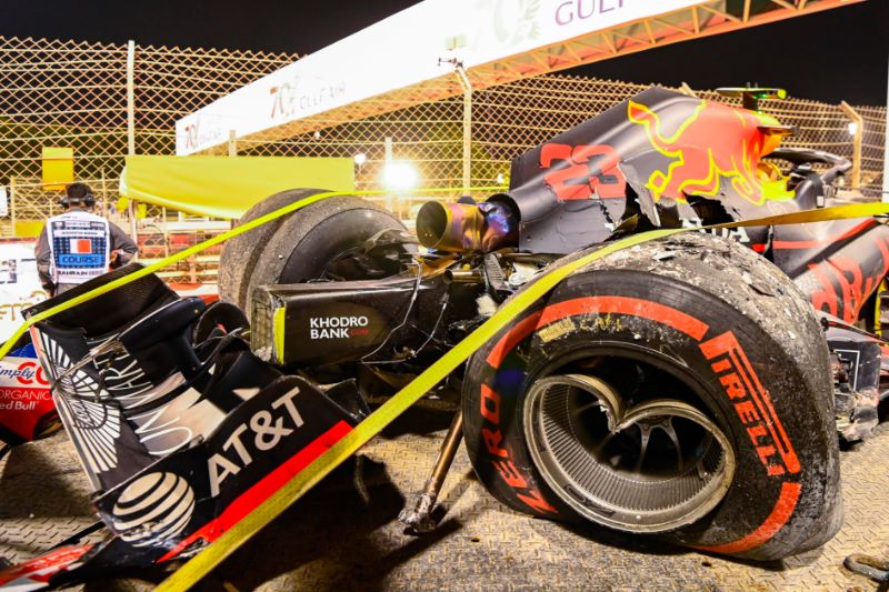 زمانیکه راننده ردبول قصد داشت تا در پیچ آخر بحرین به وسیله شتاب گیری، خودرو خود را از بخش خارجی پیست نجات دهد کنترل قسمت انتهایی خودرو را از دست داد و به شدت با دیواره پیست برخورد کرد. در پی این برخورد قسمت انتهای خودرو RB16 آلبون به طور کلی از بین رفت.