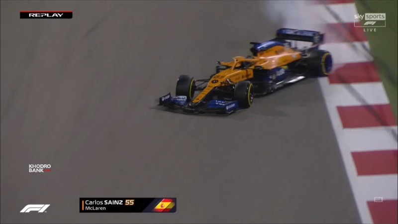 چرخش خودروی کارلوس ساینز در زمان گیری دوم در پیچ اول گرندپری بحرین 2020دور دوم از راوند دوم با ورود لاندو نوریس به پیست آغاز شد. فراریها باز هم از این مرحله صعود نکردند و با فتل در رده 11 و لکلرک در رده 12 به کار خود پایان دادند. استرول و راسل هم دو رده بعدی را در اختیار گرفتند تا با ساینز گروه میانی خط استارت گرندپری فردا را تشکیل دهند. آیا راسل خواهد توانست به امتیاز دست یابد؟ رقابت سختی با ردههای بالایی خواهد داشت.