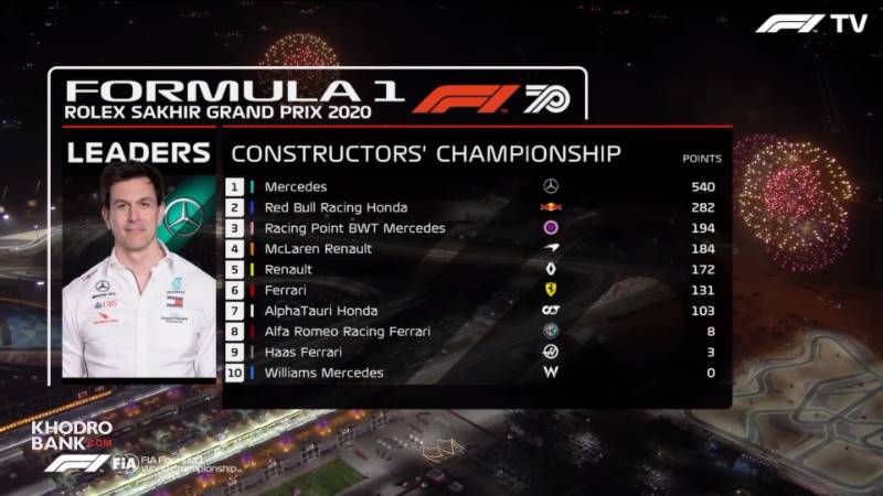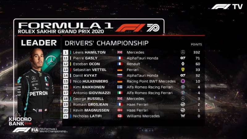 جدول رده بندی رانندگان گرندپری سخیر 2020
