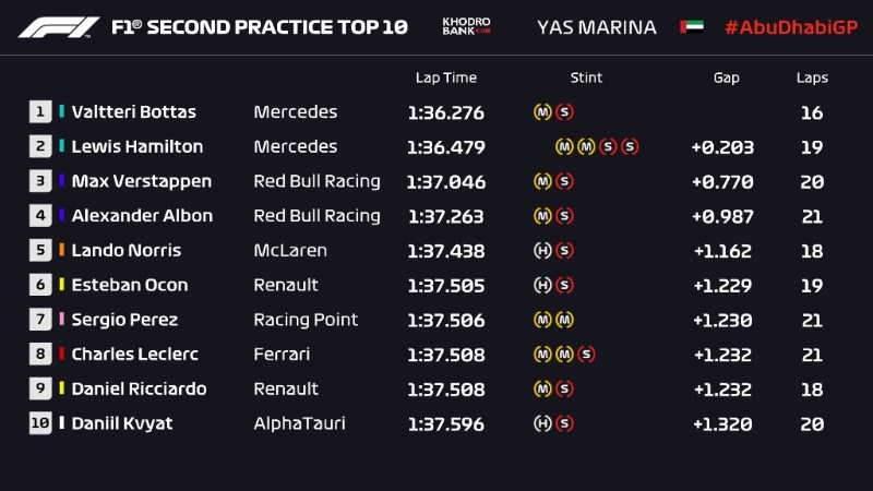 ده نفر برتر تمرین دوم فرمول یک ابوظبی