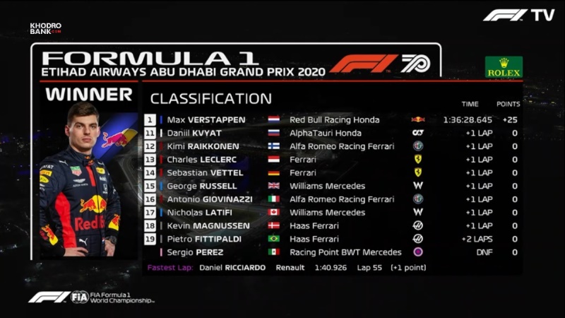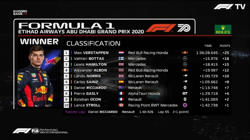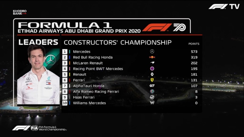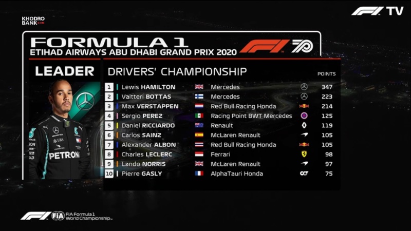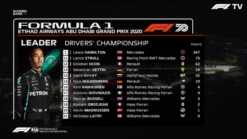 جدول رده بندی رانندگان در مسابقه فرمول یک ابوظبی