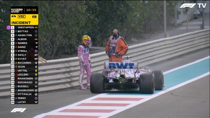 خرابی خودرو سرجیو پرزدر جریان کلی مسابقه تنها تغییری که در روند آن ایجاد شد خرابی دوباره خودرو سرجیو پرز از تیم ریسینگ پوینت بود تا این راننده مکزیکی تیم خود را با خاطره خوبی ترک نکند. مسابقه امروز آخرین مسابقه سرجیو برای تیم ریسینگ پوینت بود و با شرایط فعلی سرجیو برای فصل بعد در فرمول یک نخواهد بود.