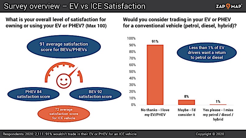 البته این نتیجه پژوهش انجامشده توسط زپ-مپ یک سرویس نقشهبرداری نقاط شارژ خودروهای برقی در انگلستان است. این گروه نظرسنجی خودشان را در ماه نوامبر با بیش از ۲۰۰۰ نفر انجام دادند و به نتایج جالبی دست یافتند.