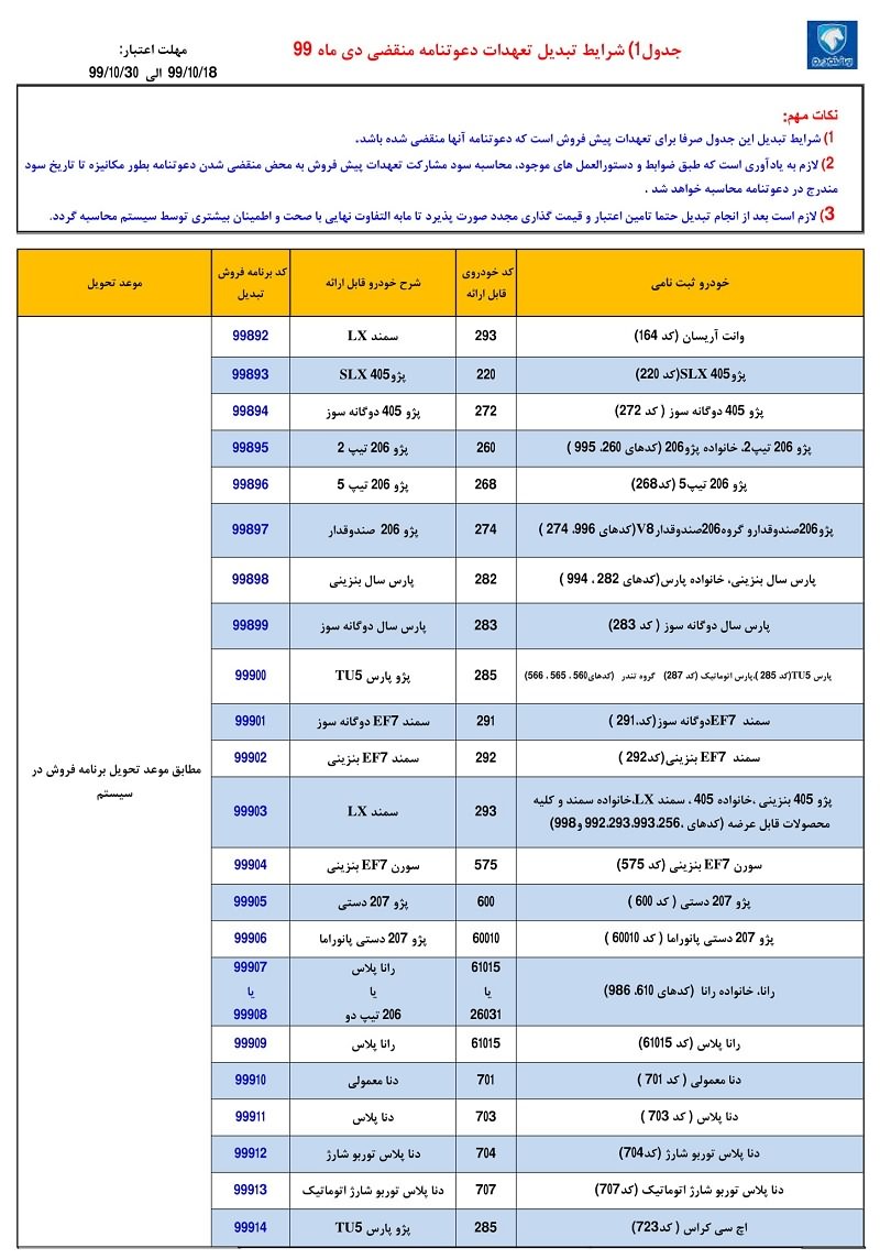 گروه صنعتی ایران خودرو با تمرکز بر روی تعهدات منقضی دی ماه محصولات خود، از روز گذشته طرح تبدیل برخی از محصولات غیرقابل عرضه خود را آغاز کرده است و تا پایان دی ماه سال جاری، مشتریان می توانند خودروهای ثبت نامی خود را با خودروهای پیشنهاد شده از سوی شرکت جایگزین کنند.