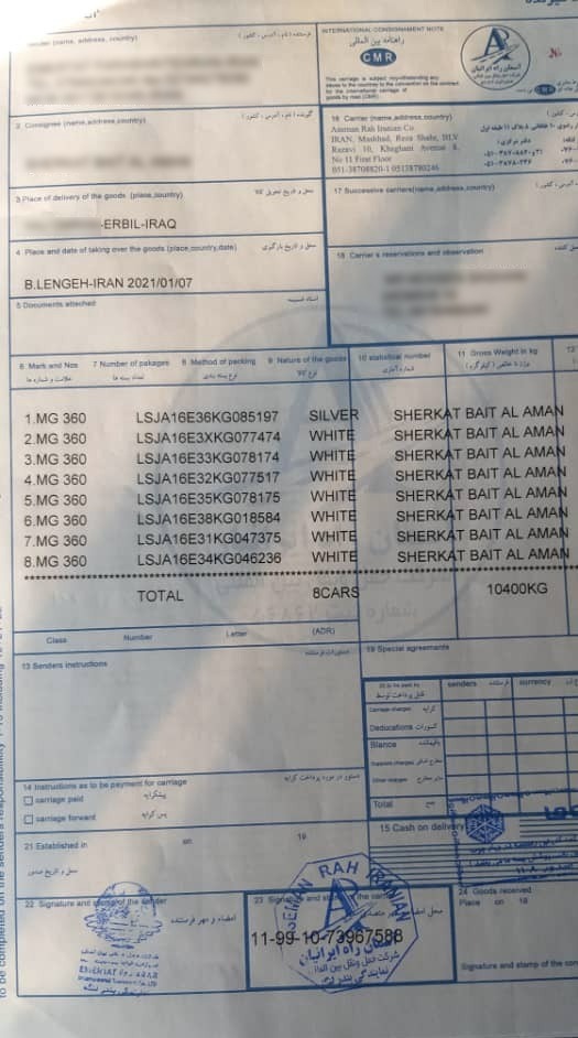 شرکت آذویکو ضمن انتشار بارنامه های مربوط به خودروهای مذکور به شماره ۹۹۵۶۰۱۲۱۱۷ صادره از بندر لنگه اعلام کرد: شماره گذاری شاسی خودروهای تولیدی در سراسر دنیا از الگوی استاندارد WMI تبعیت می کند و هر شرکت خودروسازی دارای سه حرف اختصاصی خود در این الگو می باشد و در بارنامه تریلی حامل خودروهای ام جی ، سه حرف مندرج در شماره شاسی خودروهای حمل شده LSJ و متعلق به شرکت سایک موتور چین است در حالی که شماره شاسی خودروهای شرکت آذویکو با حروف اختصاصی NB6 شروع می شوند.
