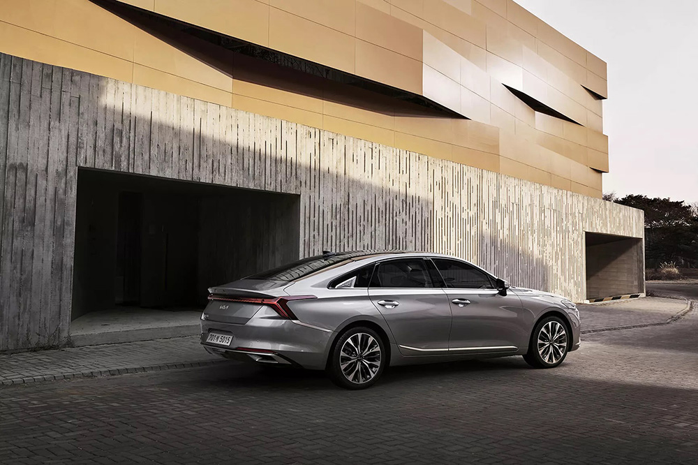 جلوپنجره این خودرو هیچگونه حاشیه ای ندارد و می توان گفت که با مجموعه سپر خودرو کاملا یکپارچه ساخته شده است و این حالت یکپارچه به جذابیت بیشتر ظاهر افزوده است. در اطراف چراغ های LED کشیده جذاب و در بالای جلوپنجره هم شاهد نصب لوگوی جدید کیا هستیم که تحولات این شرکت خودروسازی در سبک طراحی محصولات نسل جدیدش را به خوبی نشان می دهد. همانند کیا K5، نسل جدید خودروی کیا K8 در واقع یک خودروی فست بک خواهد بود، اما همچنان یک درب صندوق عقب سنتی دارد تا کاربران مشکلی در استفاده از فضای بار نداشته باشند.