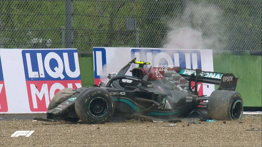 اما در ایمیلیا رومانا شرایط متفاوت از آن چیزی که تصور میشد رقم خورد. با اینکه لوئیس همیلتون و مرسدس در تمرینات وضعیت خوبی داشتند و حتی در زمان گیری هم همیلتون توانست رده اول استارت را از آن خود نماید اما حضور هر دو خودروی ردبول در ردههای دوم و سوم خط استارت و همچنین بارش باران و لغزنده بودن سطح پیست، باعث شد تا همیلتون علیرغم تمام تلاشش نتواند مقامی بهتر از دومی را کسب کند. البته در بخشی از مسابقه، او بخاطر اشتباهی که داشت تا رده نهم سقوط کرد و هم تیمی او که از ردههای میانی استارت زده بود در یک درگیری با جورج راسل از ویلیامز به هنگام سبقت ویلیامز از او در پیچ 1 و 2 با او برخورد کرد و پس از آن به دیواره خورد تا ادامه مسابقه را از دست بدهد و نتواند در کسب امتیاز یاری رسان همیلتون باشد. سر لوئیس همیلتون به لطف کسب یک امتیاز سریعترین دور توانست بالاتر از مکس ورشتپن در جدول رده بندی رانندگان تا اینجای فصل جایگاه خود را در رده اول حفظ نماید.