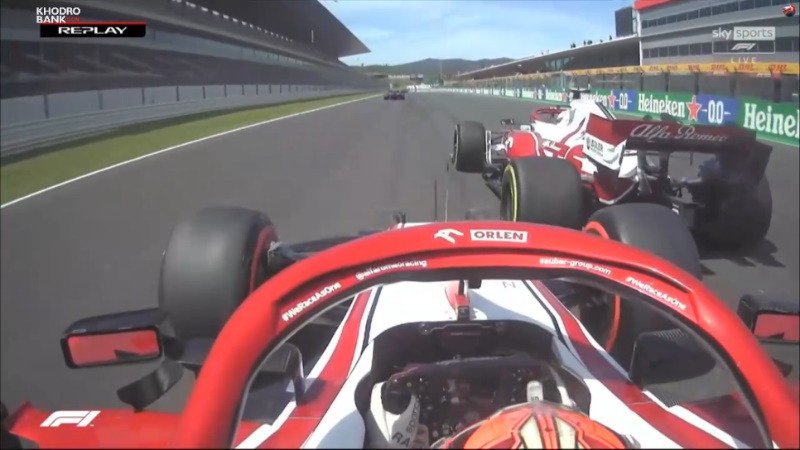 لحظه برخورد کیمی رایکونن و آنتونیو جیوویناتزی کیمی رایکونن در حالی که در مستقیمی اصلی امکان عبور از هم تیمی خود، یعنی