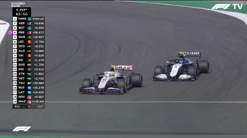 میک شوماخر پسر قهرمان افسانهای فرمول یک جهان که هم اکنون با لوئیس همیلتون دارندگان 7 عنوان قهرمانی جهان هست، مایکل شوماخر نه تنها بهتر از نیکیتا مازپین هم تیمیاش عمل کرد بلکه توانست پس از بارها تلاش بالاخره در دور 63 از نیکلاس لطیفی راننده ویلیامز عبور نماید. او بارها برای عبور تلاش کرد و هر بار به دلیل رسیدن حودروهای جلویی و نمایش پرچم آبی مجبور شد سرعت خود را کاهش دهد تا راه را برای عبور آنها باز نماید. حتی در برههای تا فاصله 3.5 ثانیه از لطیفی عقب ماند اما ناامید نشد و در نهایت کار در رده هفدهم تمام کرد