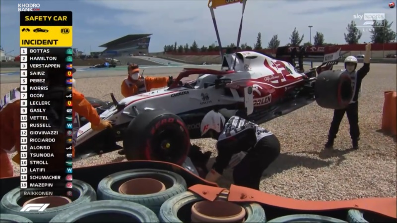 لاستیک عقب ماشین آلفارومئو کوبید. در نتیجه این برخورد باله ماشین رایکونن شکست و به زیر چرخ جلو رفت و در پیچ یک مانع از فرمان پذیری