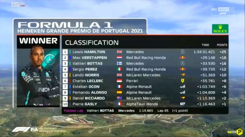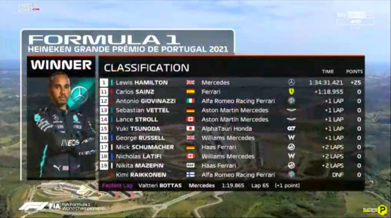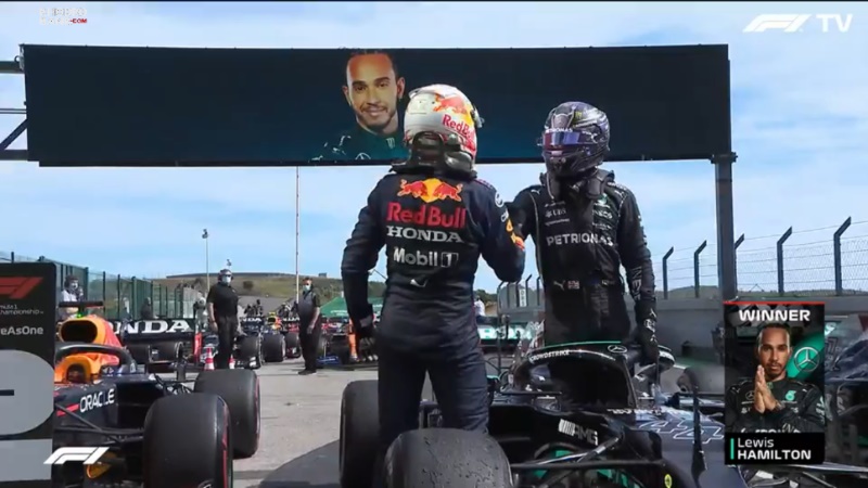 سر لوئیس همیلتون باز هم بالاتر از مکس ورشتپن از ردبول و هم تیمی خودش در مرسدس، والتری بوتاس، بر روی سکوی پورتیمائوی پرتغال 2021 ایستاد.
