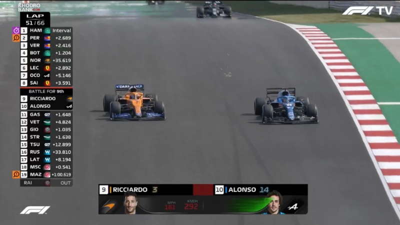 سبقت از قسمت بیرونی پیچ 1 همیلتون از بوتاسبعد از این نبردها در پیشتازان، نوبت به جنگ میانه گروه و پایینیها رسید،