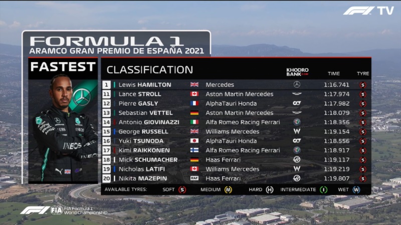 جدول رده رانندگان در دور تعیین خط بارسلونا 2021