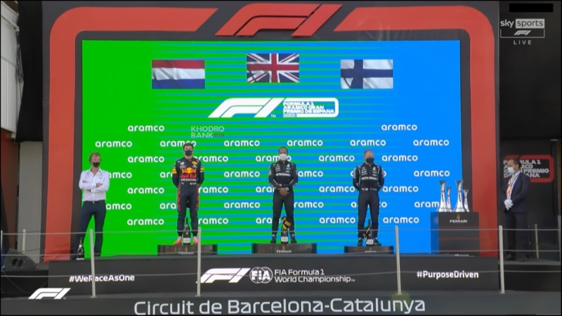 سکوی گرندپری بارسلونا 2021اما در ابتدا باید گفت استارت فوق العاده مکس ورشتپن و ترمز گیری دیر هنگام او در زمان ورود به پیچ یک باعث شد تا لوئیس همیلتون فضای لازم برای پیچیدن نداشته باشد به علاوه اشتباه او در بستن داخل باعث شد که مکس به راحتی به او نزدیک شود و بتواند به هنگام خروج از پیچ 1 زوودتر از قهرمان 7 دوره حال حاضر فرمول یک جهان نبرد را ترک نماید و از اینجا به بعد این همیلتون بود که تمام مدت در تعقیب او ماند. گاهی فاصلهاش به 0.6 ثانیهای مکس هم رسید اما هیچگاه نتوانست حتی به نشان دادن سبقت هم نزدیک شود. در همان ابتدا در پیچ 4 و 5 هم این