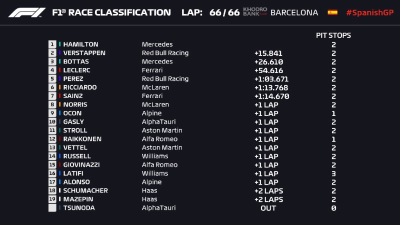 جدول رده بندی گرندپری اسپانیا 2021