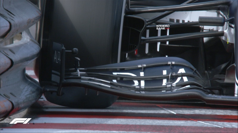 لاستیک با فاصله نزدیکی با مکس ورشتپن در پیست حرکت نماید، و شانس اورلپ کردن مکس را نیز داشت، اسیر باز نشدن لاستیک شد. لاستیک جلو سمت راست باز نشد و در نهایت حکم به خروج او داد و همین موضوع کمکی شد تا