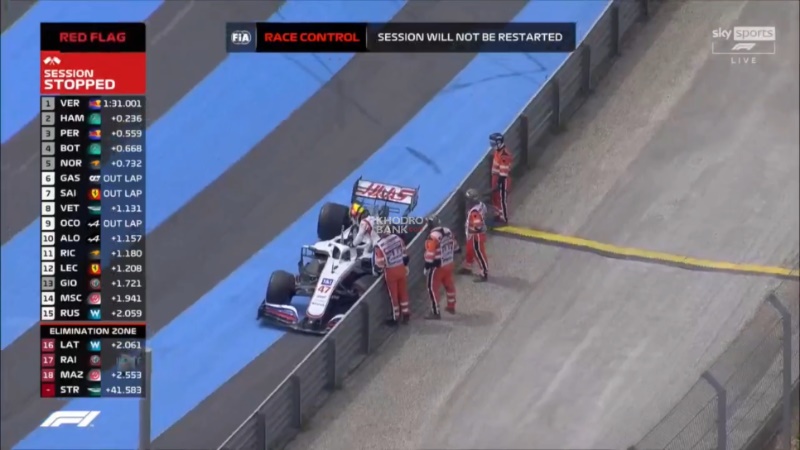 پس از سبز شدن مجدد چراغ پیست اینبار خودروهای فراری جلوتر از بقیه وارد پیش شدند. لنس استرول از تیم استون مارتین در تلاش اول توانست زمان بهتری نسبت به سباستین فتل ثبت کند اما به علت عدم رعایت ترک لیمیت زمان وی حذف شد و در تلاش دوم نیز نتوانست زمان خودش را بهبود دهد. از سوی دیگر میک شوماخر که توانسته بود زمان خوبی را در تلاش اول به ثبت برساند در تلاش دوم کنترل خودرو را از دست داد و با دیواره پیست برخورد کرد. در پی این برخورد چرخ جلو سمت چپ خودرو شوماخر دچار آسیب شده و از ادامه تعیین خط باز ماند.