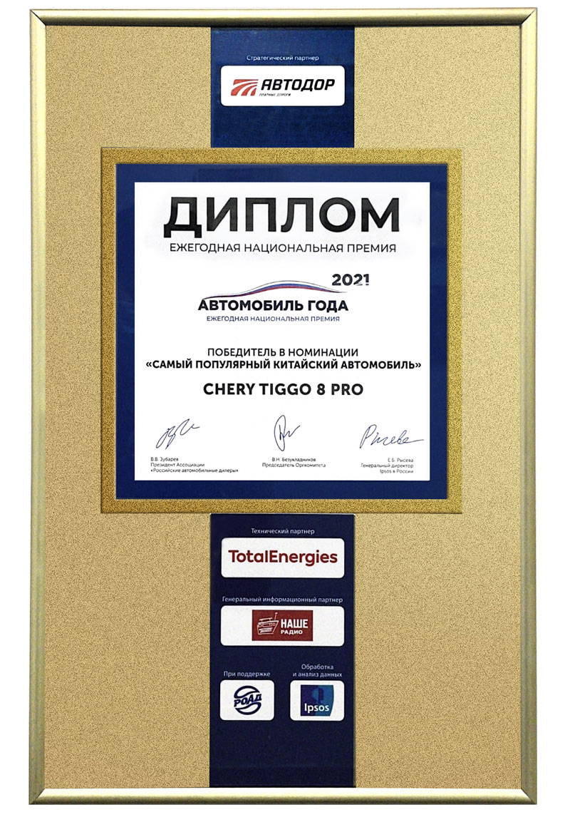 اخیرا در مراسم سالیانه خودروی سال در کشور روسیه در سال 2021 برند چری به عنوان محبوب ترین برند چینی در این کشور شناخته شده است و همچنین خودروی تیگو8 پرو نیز به عنوان محبئب ترین اس یو وی چینی در بازار روسیه شناخته شده است .