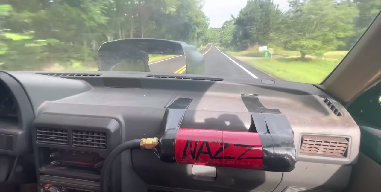 چون تمام رانندههای حرفهای میدانند که برای افزایش ورود هوا به موتور به یک هواکش کاپوت نیاز است، او قسمت بالایی ماشین چمنزنی خودش را به جای هواکش روی کاپوت این پراید تیون شده قرار داده است. او حتی یک آرم شورولت روی جلوپنجره قرار داده تا این پکیج جذاب را تکمیل کند.