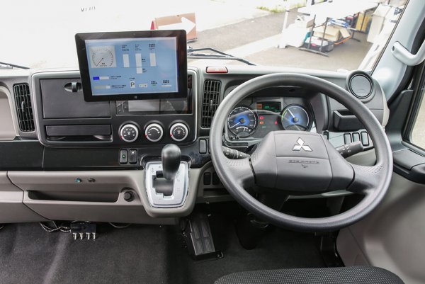 فوسو F-CELLکابین فوسو F-CELL همانند سری کامیونتهای این شرکت است با این تفاوت که یک تبلت برای نمایش میزان قدرت موتور و سایر مشخصات فنی برای آن در نظر گرفته شده است. میزان تولید نیرو توسط مقدار هیدروژن تأمین شده کنترل می شود اما از آنجاییکه فوسو اف سل یک کامیون تمام الکتریکی نیست، این نیرو کمتر از حالتی است که با یک خودرو تمام برقی مواجه هستیم. حداکثر مقدار خروجی پیوسته 75 کیلووات برای سلولهای سوخت + 110 کیلو وات برای باتری است.