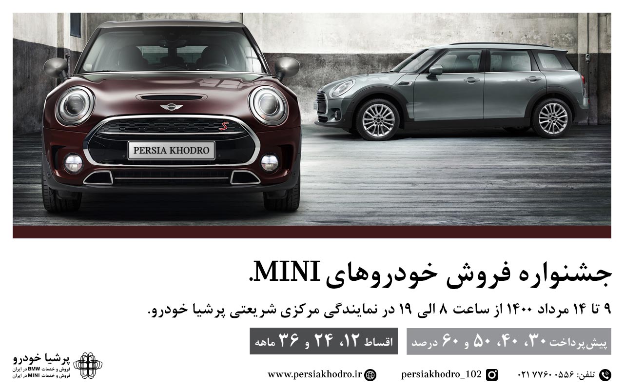 شرکت پرشیا خودرو به عنوان تنها شرکت ارائه دهنده خدمات خودروهای ب ام و و مینی در ایران، برای اولین بار جشنواره فروش ویژه خودروهای مینی را در نمایندگی کد 102 این مجموعه واقع در خیابان شریعتی برگزار نموده است و علاقمندان به برند مینی می توانند با حضور در این جشنواره با بهترین شرایط نقد و اعتباری اقدام به خرید خودروهای مینی نمایند.