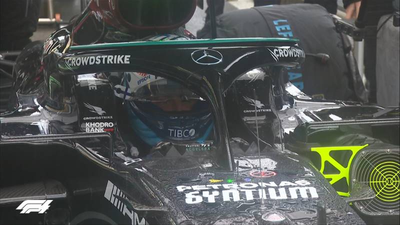 پس از تاخیر حدودا 30 دقیقهای تیمها دور گرم کردن یا فرمیشن لپ را پشت خودروی ایمنی آغاز کردند اما در میانه راه با توجه به وضعیت پیست و مقدار آب موجود پرچم قرمز به نمایش درآمد و به خودروها اعلام شد که به پیت برگردند.