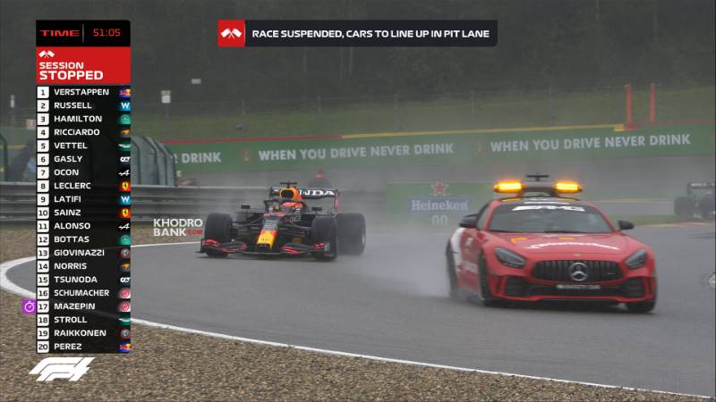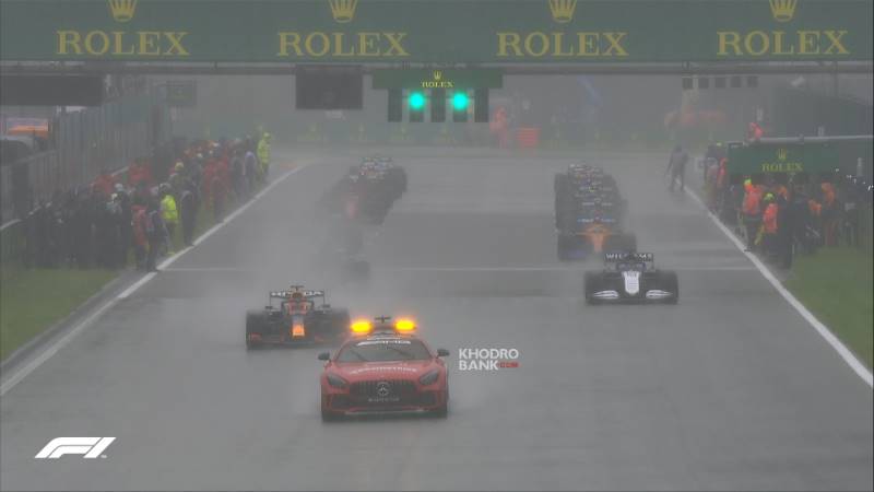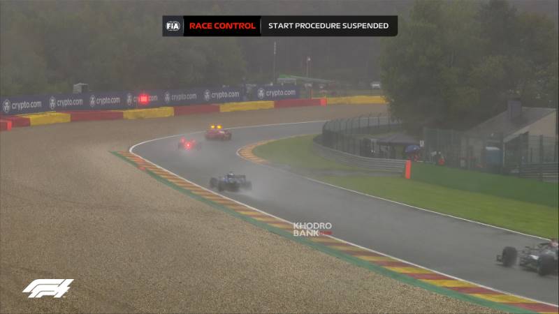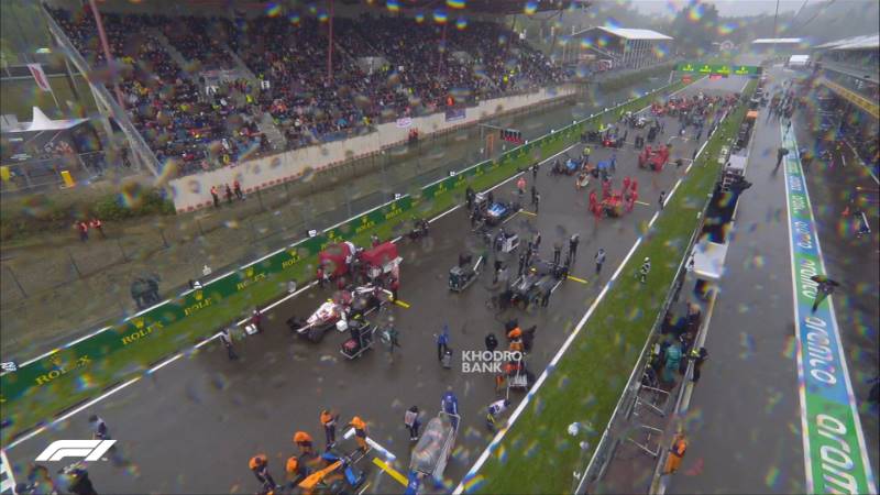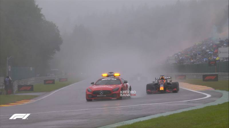 گرندپری بلژیک به دلیل بارش شدید باران و وضعیت نامصاعد پیست و همچنین سرمای هوا، بعد از 4 دور پشت خودروی ایمنی شروع نشده پایان یافت و مکس ورشتپن و جورج راسل و لوئیس همیلتون سکوها اول تا سوم را به خود اختصاص دادند